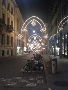 DSC00262There  are shopping streets in Basel, as well as malls you can shop at. The main shopping street for gift is Freiestrasse, which starts at Bankverein and runs parallel to Barfusserplatz and Marktplatz. You should be able to find most of your christmas gift list there. Lots of fashion retail stores, jewelry and sporting goods stores. If you’ve got a big budget, you’ll find lots of high end stores; if you’ve got less to spend you’ll also find great bargains (but keep in mind it’s Switzerland, so great bargains is a relative term)! In addition to the numerous shops and cafes, there are often street performers, street vendors and beautiful decorations, especially if you go after dark. There are also loads of shops located on Steinenvorstadt.