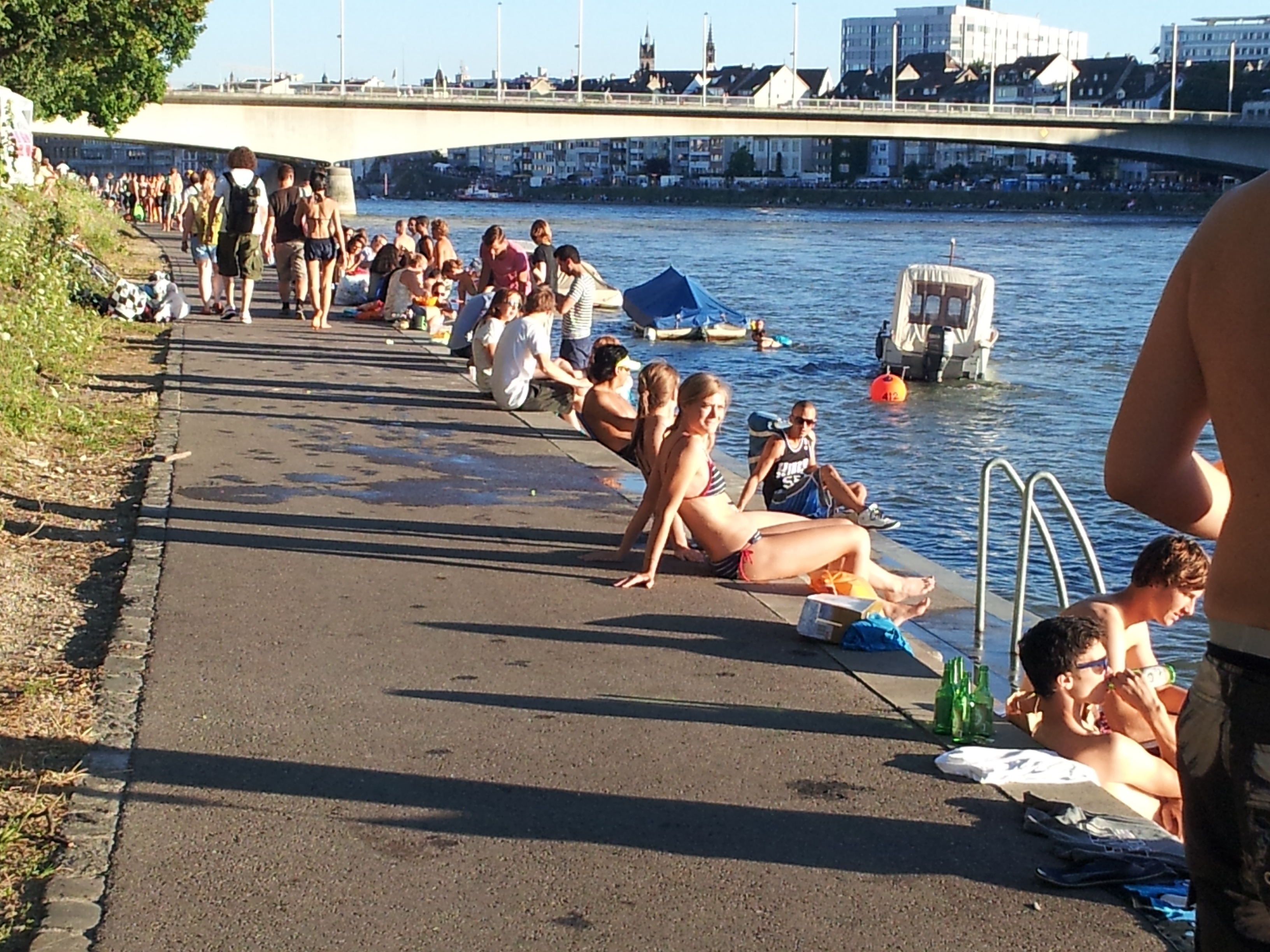Even if you’re new to Basel, I’m sure you noticed that the city is divided by a river. This river is the Rhein (English spelling: Rhine). In the summer months, you’ll also notice that lots of people like to swim in the Rhine (including myself). Others refuse to swim in the river, for various reasons. Even for people choosing not to take a dip, there are still lots of places to relax on the banks of the Rhine, and just enjoy the view.